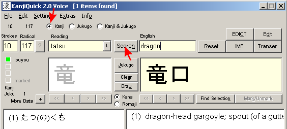 You may combine search criteria ( strokes , radical , reading , English ) in order to narrow the search results for a single kanji. You cannot search for jukugo compounds by defining radicals or inputting stroke numbers.