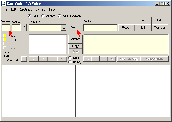 If you are not sure about the stroke count (there are differing official definitions) then you may input a stroke range using the pattern "a-b." For example, if you enter "7-9" in the Strokes input box , KanjiQuick will search for all kanji with seven, eight, or nine strokes.